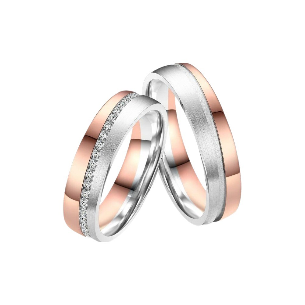 Verighete din aur roz si alb de 14k cu diamante de 0.50 ct Greutatea aproximativa este de aprox. 12.00 gr/set.  Verighetele se pot face pe comanda si din aur de 18k. Putem modifica disign-ul in functie de bugetul dumneavastra.