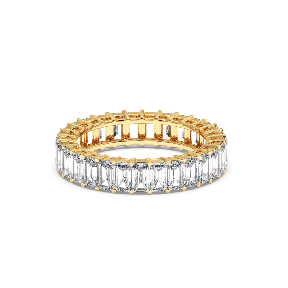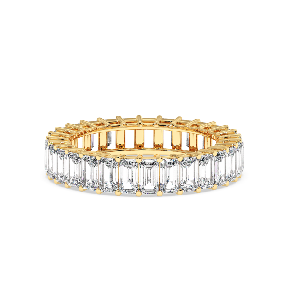 Verigheta Eternity din aur alb de 14K ,cu diamante Baget de 3.47 ct. Greutatea aproximativă a verighetei este de 3.30 grame.
