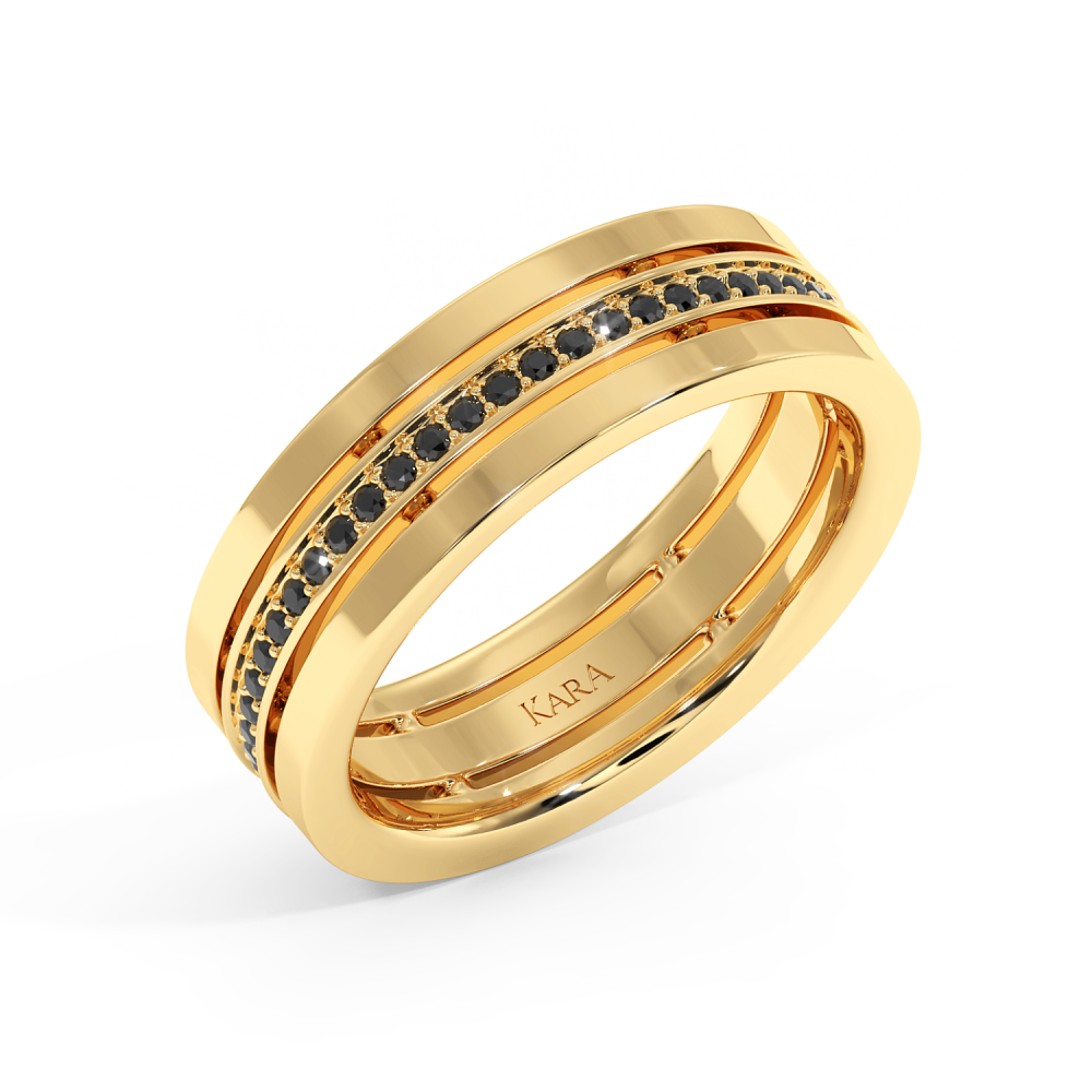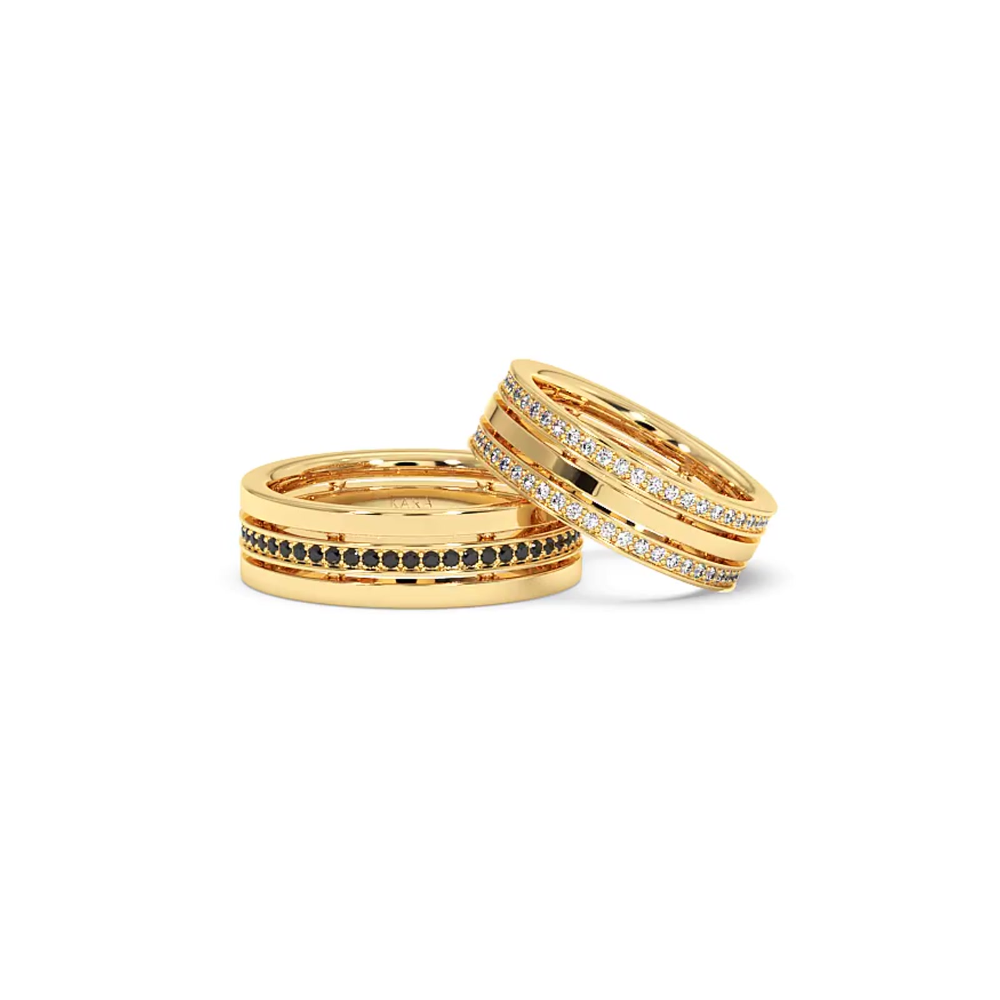 Verighete din aur de 14K cu Diamante Albe de 0.63ct si Diamante Negre de 0.43ct. Greutatea aproximativa este de 13.00gr/set. Latimea verighetelor este de 6mm.