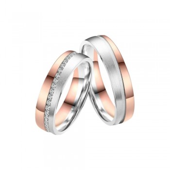 Verighete din aur alb si roz de 14k cu diamante de 0.30. Greutatea aproximativa este de aprox. 12.00 gr/set.  Verighetele se pot face pe comanda si din aur de 18k. Putem modifica disign-ul in functie de bugetul dumneavastra.