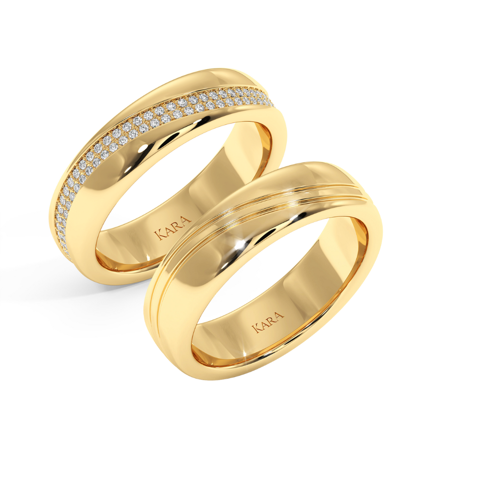 Verighete din aur de 14k cu diamante de 0.39ct. Latime verigheta barbat de 6mm, latime verigheta dama de 5mm. Greutatea aproximativa este de 12.80 gr/set. Verighetele se pot face pe comanda si din aur de 18k. Putem modifica design-ul in functie de bugetul dumneavoastra. Putem alege...