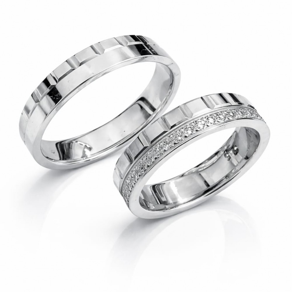 Verighete din aur alb/rose din 14k cu diamante de 0.41 ct. Greutatea aproximativa este de 11.18 gr/set. Verighetele se pot face pe comanda si din aur de 18k. Putem modifica disign-ul in functie de bugetul dumneavastra. Putem alege caracteristicile diamantelor...