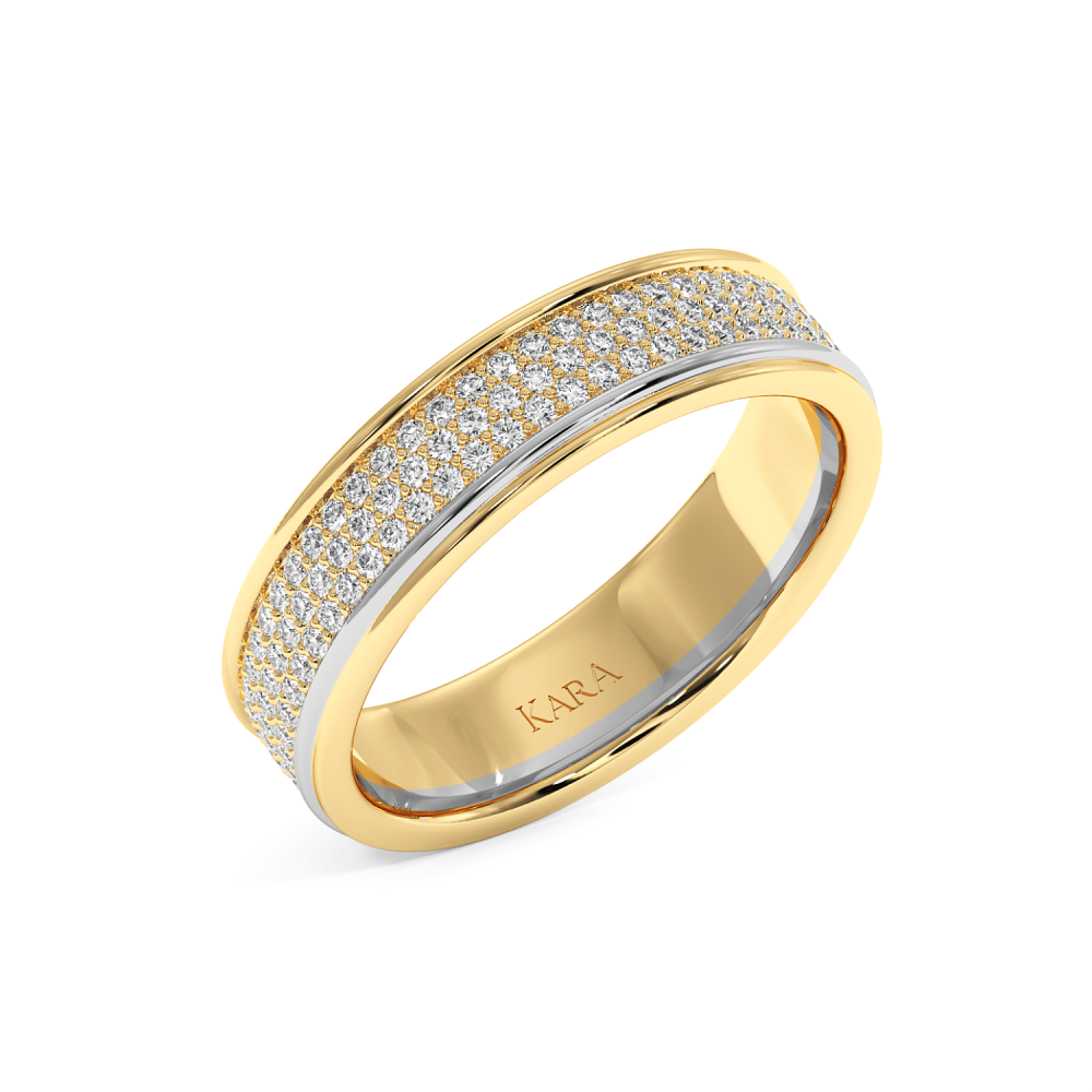 Verighete din aur de 14K cu diamante albe de 0.44ct. Greutatea aproximativa este de 11.50gr/set. Latime verigheta dama 4.90mm, latime verigheta barbat 4.90mm.