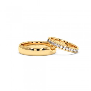Verighete din aur de 14K cu diamante albe de 0.70ct. Greutatea aproximativa este de 10.50gr/set. Latime verigheta dama 3.20mm, latime verigheta barbat 5.30mm. Verighetele se pot face pe comanda si din aur de 18k. Putem modifica design-ul in functie de bugetul dumneavastra. Putem alege...