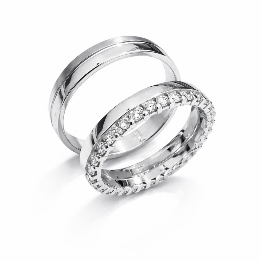 Verighete din aur alb din 14k cu diamante de 0.82 ct. Greutatea aproximativa este de 9.39 gr/set. Verighetele se pot face pe comanda si din aur de 18k. Putem modifica disign-ul in functie de bugetul dumneavastra. Putem alege caracteristicile diamantelor...