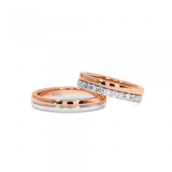 Verighete din aur de 14K cu diamante albe de 1.24ct. Greutatea aproximativa este de 11.00gr/set. Latime verigheta dama 4.50 mm, latime verigheta barbat 4mm.