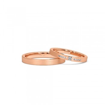 Verighete din aur de 14K cu un diamant princess cut de 0.04ct si diamante rotunde de 0.03ct. Greutatea aproximativa este de 7.50gr/set. Latime verigheta dama 2.40mm, latime verigheta barbat 3.10mm. Verighetele se pot face pe comanda si din aur de 18k. Putem modifica design-ul in functie...