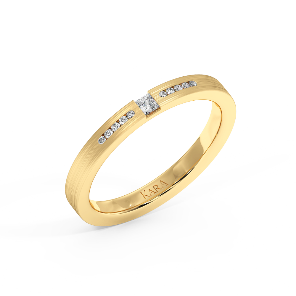 Verighete cu un Diamant Princess Cut de 0.04ct si Diamante Rotunde de 0.03ct