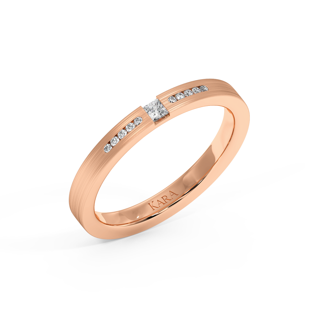Verighete cu un Diamant Princess Cut de 0.04ct si Diamante Rotunde de 0.03ct