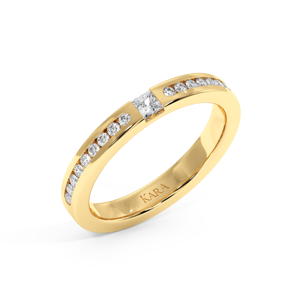 Verighete cu un Diamant Princess Cut de 0.08ct si Diamante Rotunde de 0.18ct